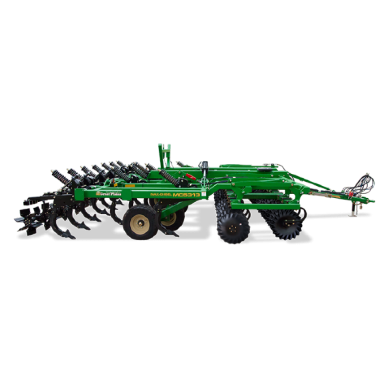 The Great Plains Max-Chisel® is an aggressive primary tillage tool that is designed to achieve complete fracture at shallower depths, leaving fields smoother and more uniform than most traditional disk rippers. Mounted to individual C-shanks, 24" blades on 15" spacing allow plenty of clearance for trash and residue. All feature maintenance-free tapered bearings in a cast hub and a six-lip interlocking seal to keep grease in and dirt out.