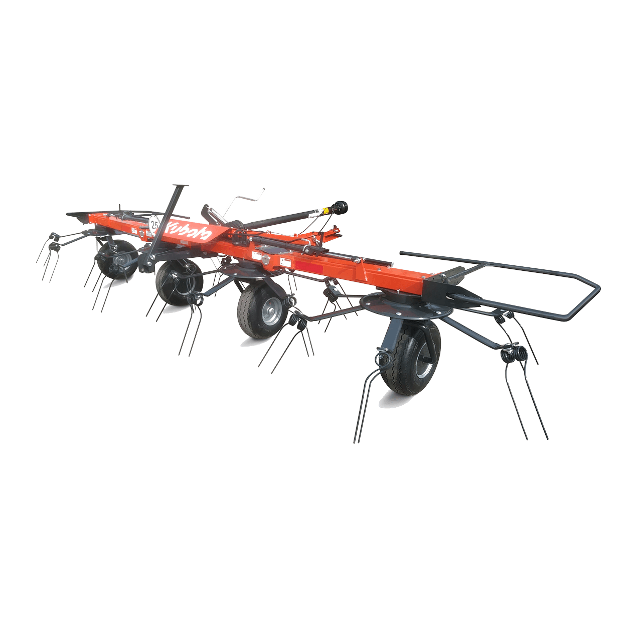 Rugged and dependable, Kubota's TE4052T pull-type rotary tedder features a 17'1" working width and a strong, one-piece metal chassis for outstanding longevity. With a low weight and power requirement, these tedders are ideal for small horsepower tractors. The four rotors, in combination with a wide overlap, ensure smooth forage pickup and even distribution.