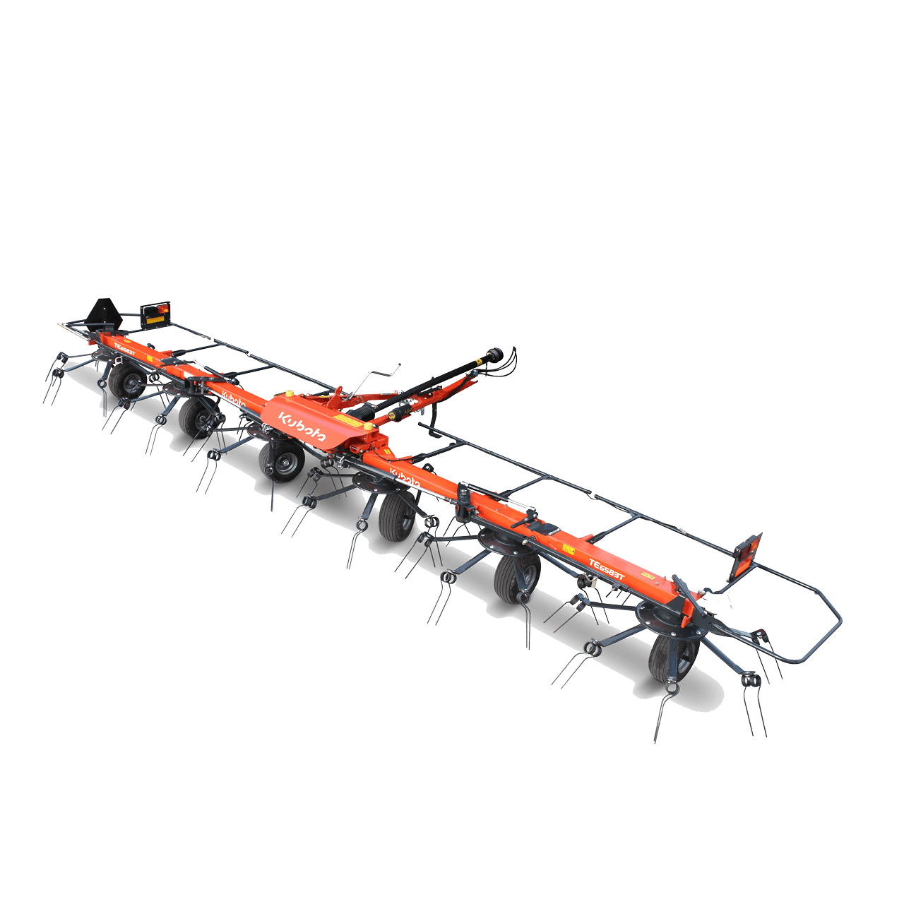 Kubota's TE6500 Series is the ideal combination of a significant working width, low horsepower requirement and stable fast transport. Wide track-width ensures smooth operation and outstanding stability on the road.